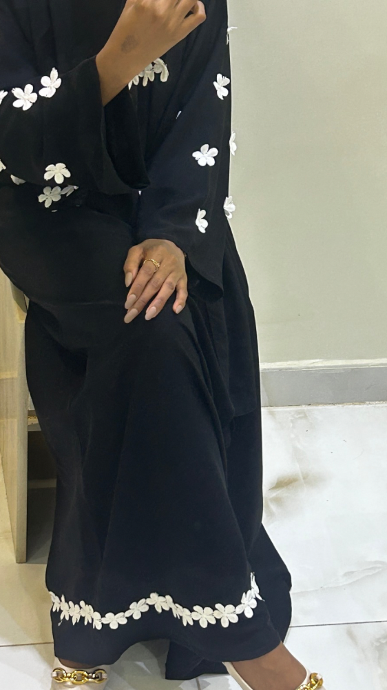 الاسم :M235الخامه :كريباللون :الاسودنوع الكم :واسعهنوع القفله :مقفلهالتفاصيل ؛عباية الورده البيضاء صممت خصيصا لك لتزيد من جمالك محدده بورد ابيض من الكمام والاطراف.