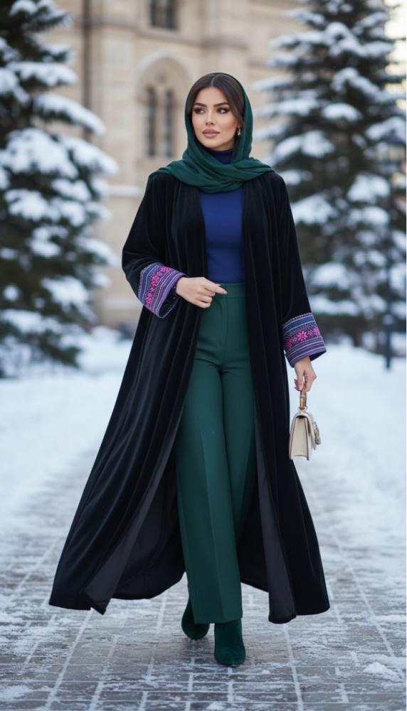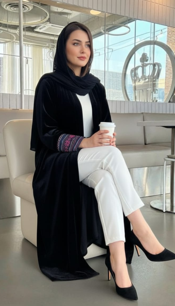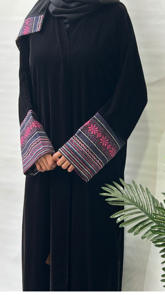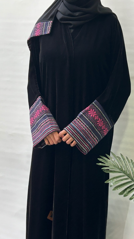الاسم :M 257الخامه : مخملللون :.اسودنوع الكم :قفلنوع القفله :مفتوحالتفاصيل ؛عباية سوداء شتويه بقماش مخمل واطراف ملونه